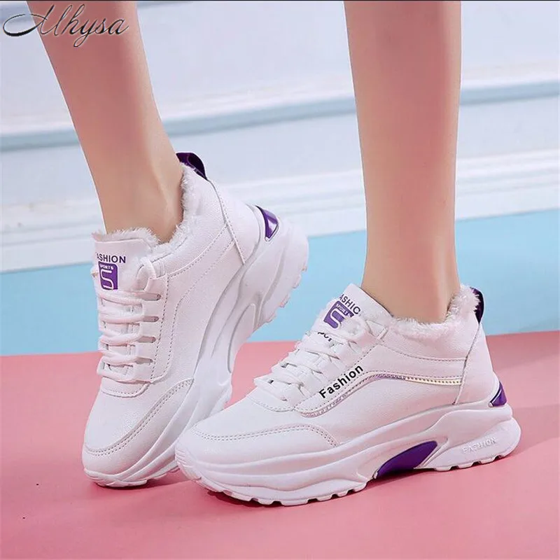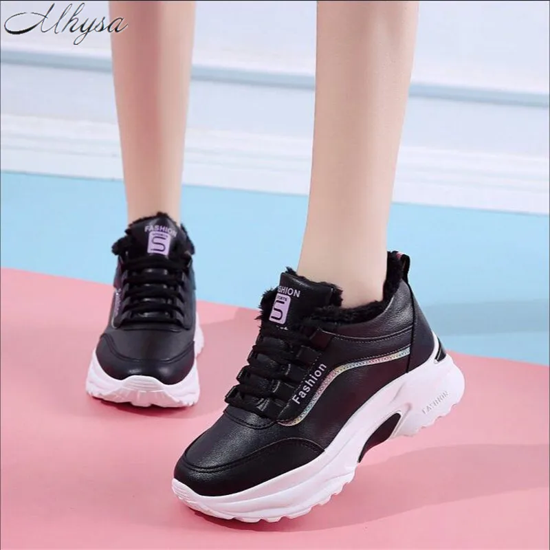 .image of Mhysa 2019 Women Casual Sneakers Winter Plush Fur Keep Warm Women Shoes Lace Up Female Shoes Comrfo