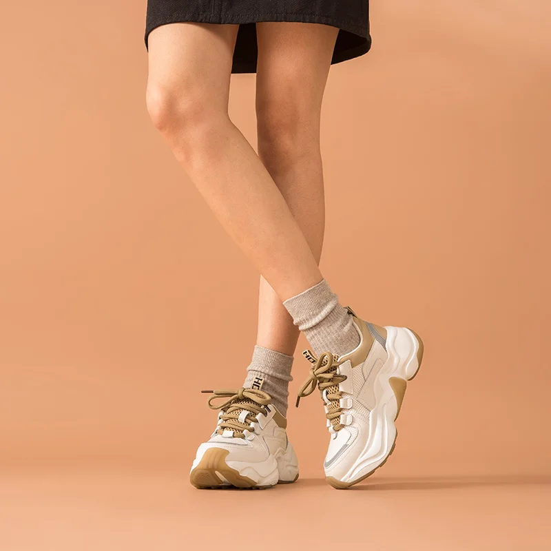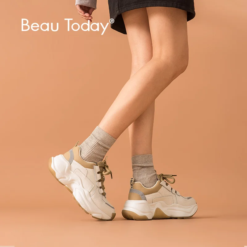 Buy BeauToday Chunky Sneakers Women Genuine Cow Leather Nylon Mesh Retro Design Lace-Up Platform Shoes Right Here and Right Now, Because before price is changed you will just pay for US $58.80, not in Reguler Price at US $106.90. Yap! This is I mean you will Save 45%
