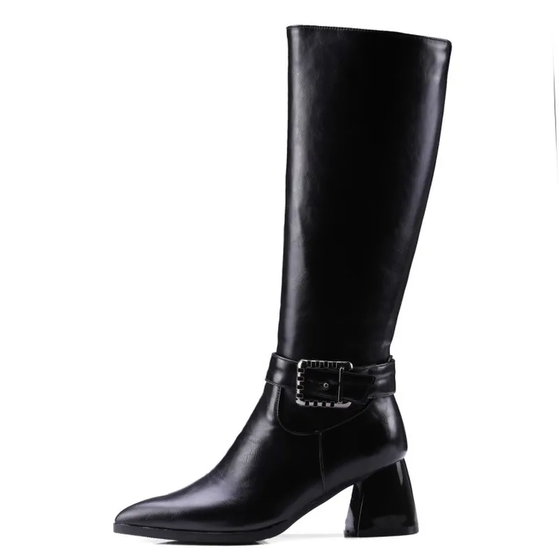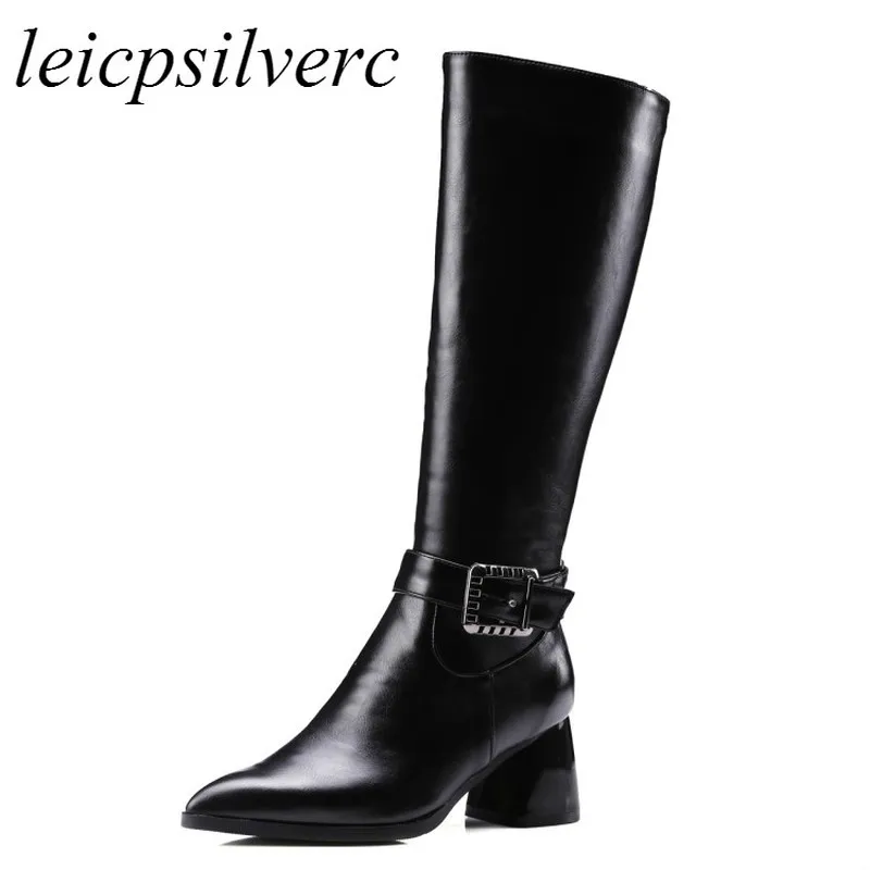 Special Chance for Women Boots Winter Autumn Warm Plush Shoes Knee High Heels Motorcycle Boot Pointed Toe Platform Zip